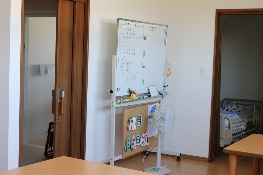 通所介護施設で、食事・入浴等の日常生活の支援や生活行為向上の為の支援を日帰りで行います。